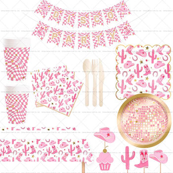 DAMAI gidelim kızlar parti sofra hizmet 8 misafirler Cowgirl kağıt tabaklar tatlı tabakları tek kullanımlık bekarlığa veda süslemeleri